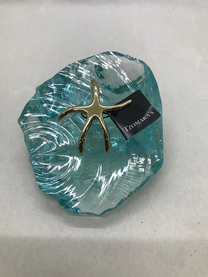 Αστερίας από ορείχαλκο πάνω σε ακανόνιστης μορφής τυρκουάζ γυαλί.