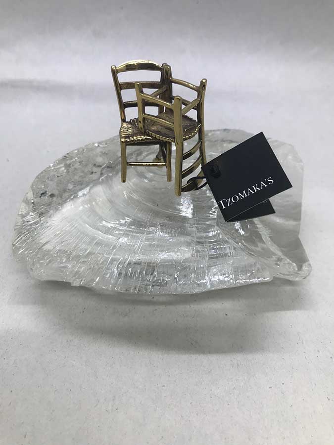 Καρέκλες διπλές από ορείχαλκο πάνω σε ακανόνιστης μορφής γυαλί.
