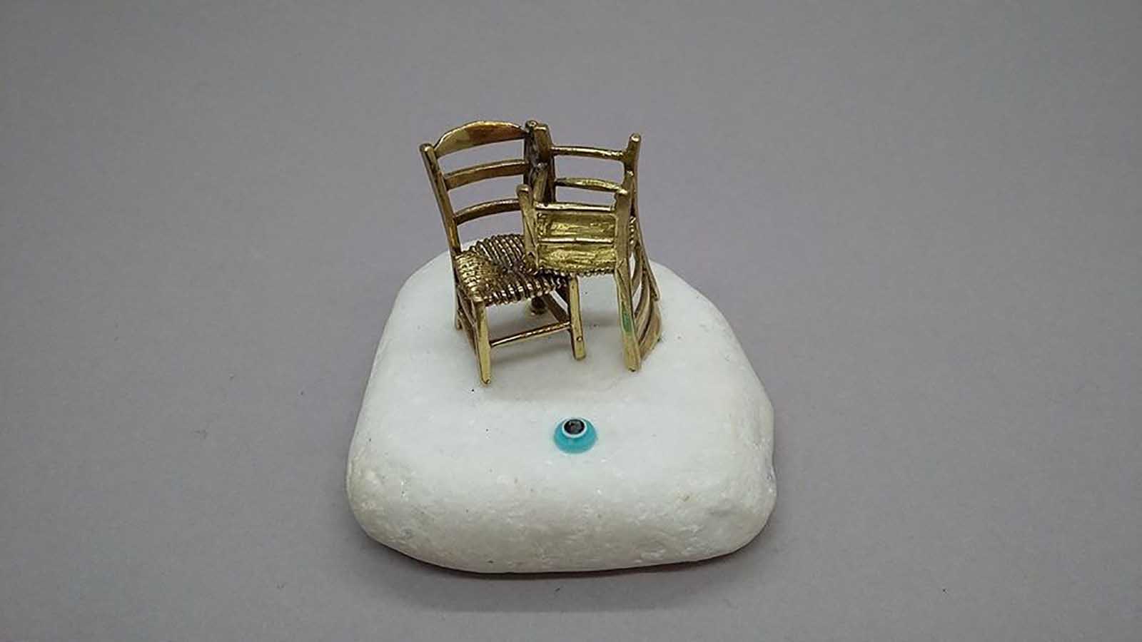 Καρέκλες διπλές από ορείχαλκο πάνω σε λευκό μάρμαρο.