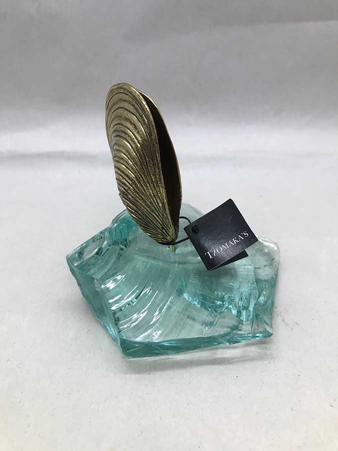 Μύδι από ορείχαλκο πάνω σε ακανόνιστης μορφής γυαλί.